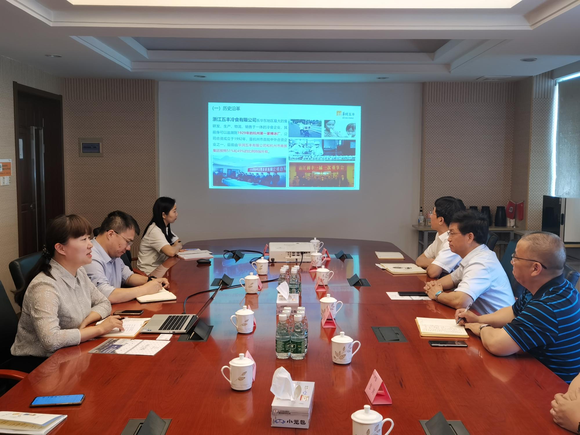 董校长一行受到杭州衣邦人科技有限公司创始人兼CEO方琴和浙江五丰冷食有限公司副总经理江雪英的热情接待。董进才介绍了学校的基本情况和毕业生情况,对杭州衣邦人科技有限公司和浙江五丰冷食有限公司对学校工作的大力支持表示感谢。董校长听取了刘磊博士挂职期间所取得的国家专利和国家工程实验室研究项目等成果汇报。希望校企业双方继续加强交流和合作,通过博士进企业、在校生进企业等项目,增进学校、学生和企业之间的了解和共识,增加实践体验,推动用人、育才精准匹配。