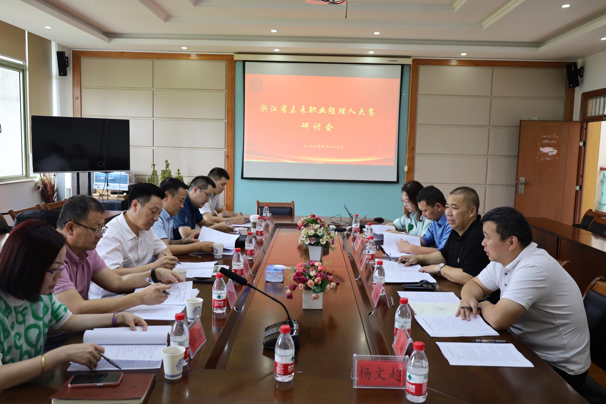9月23日上午,浙江省未来职业经理人大赛研讨会在学院楼410召开。浙江省职业经理人协会秘书长沈建、副秘书长沈家琪,浙江省中经发政企合作服务中心主任王前利、副主任刘丽红、主任助理王明,学院党委书记黄卫华、副书记吴玻、副院长张雷、大赛秘书处洪雁、应瑛、杨文超等出席了会议。