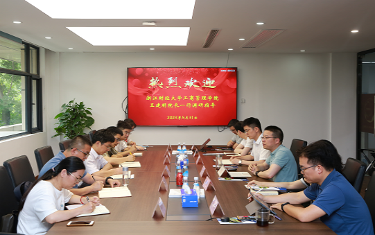 5月31日下午,王建明院长带队赴浙商糖酒集团走访调研,受到了浙商糖酒集团总经理王卫华,公司副总经理楼文清,副总经理朱波,总经理助理胡鹏,销售部经理、学院工商管理专业2010届江浩校友等的热情接待。学院党委委员、学办主任胡星平,市场营销系教师高键、邓年奇,绿色管理研究院、数字化营销课题组成员解晓燕、周勤勤参加走访调研。