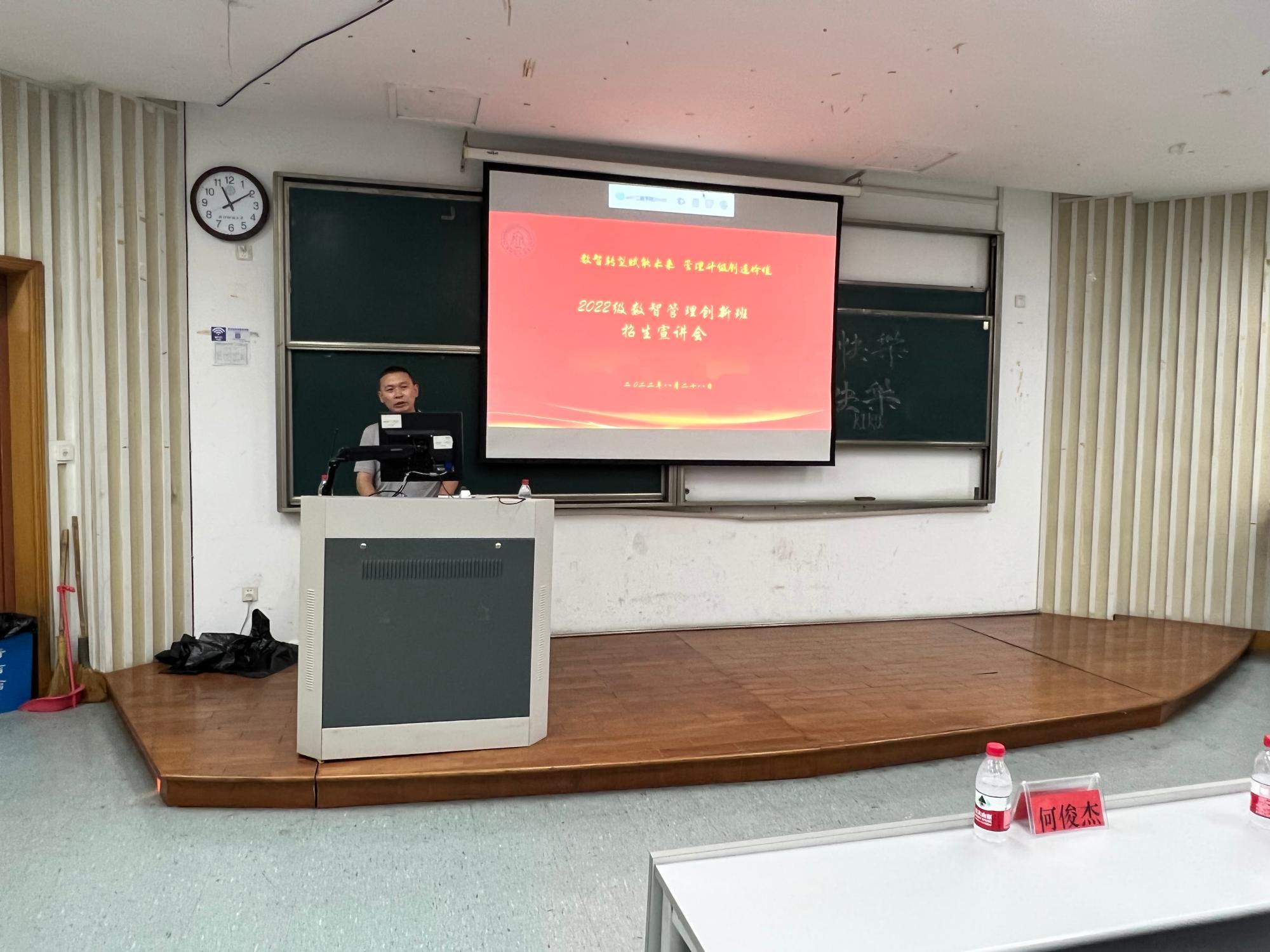 (MBA学院)数智管理创新班项目执行人沈渊,数智管理创新班辅导员何俊杰,以及2022级工商管理类全体新生参加了本次线下宣讲会,会议由何俊杰主持。