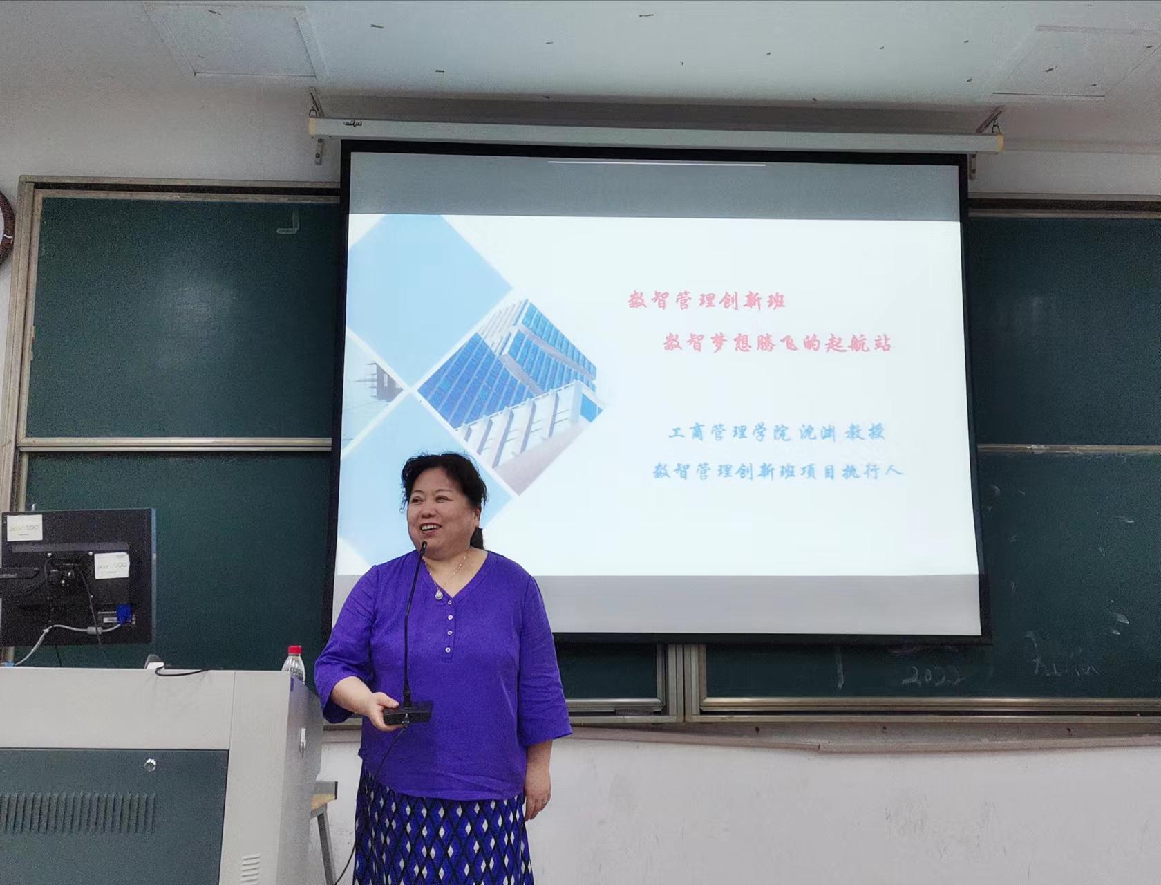 专业建设成果,数智管理创新班培养目标、优势与成效等,并希望22级新生好好把握大学生活,努力学习,不负青春。
