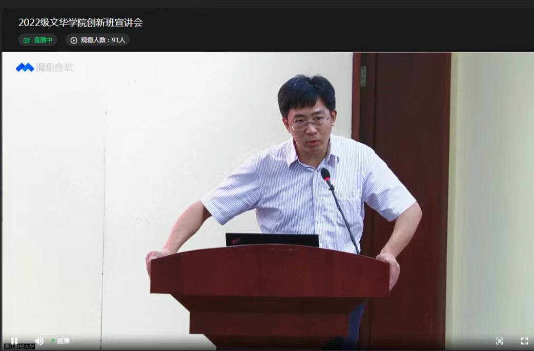(MBA学院)举办线下2022级数智管理创新班招生宣讲会,同时组织学生观看文华学院创新班宣讲会直播视频。