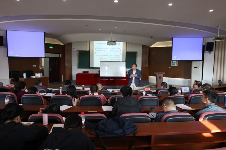 王重鸣教授首先介绍了BGA商科毕业生协会国际认证(Business Graduates Association)的发展历程,继而基于“责任”与“可续”两个重要理念阐述了持续影响力模型(CIM),从“培养目标、校友成就、价值创造、社会贡献、生态系统、学术成效”六个维度出发开展工作,同时,王重鸣教授结合学院发展战略,就办学定位,课程体系建设,定制模块化示范课程,打造样板专业等方面提出了指导意见和建议,并表示希望学院要以BGA国际认证为契机,把国际认证的各项指标作为学校的发展战略,从而全面提升学院的教育质量和国际化水平。