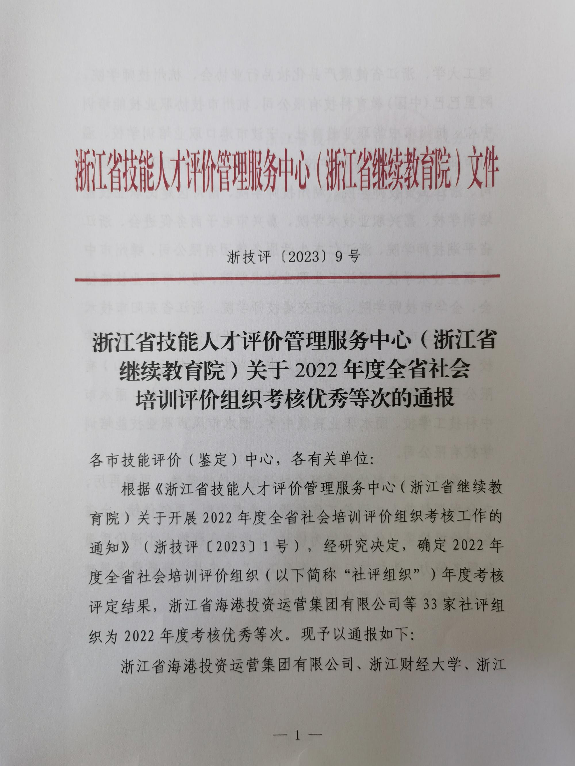近日,浙江省技能人才评价管理服务中心(浙江省继续教育院)下发2022年度全省社会培训评价组织考核优秀等次的通报,香蕉视频