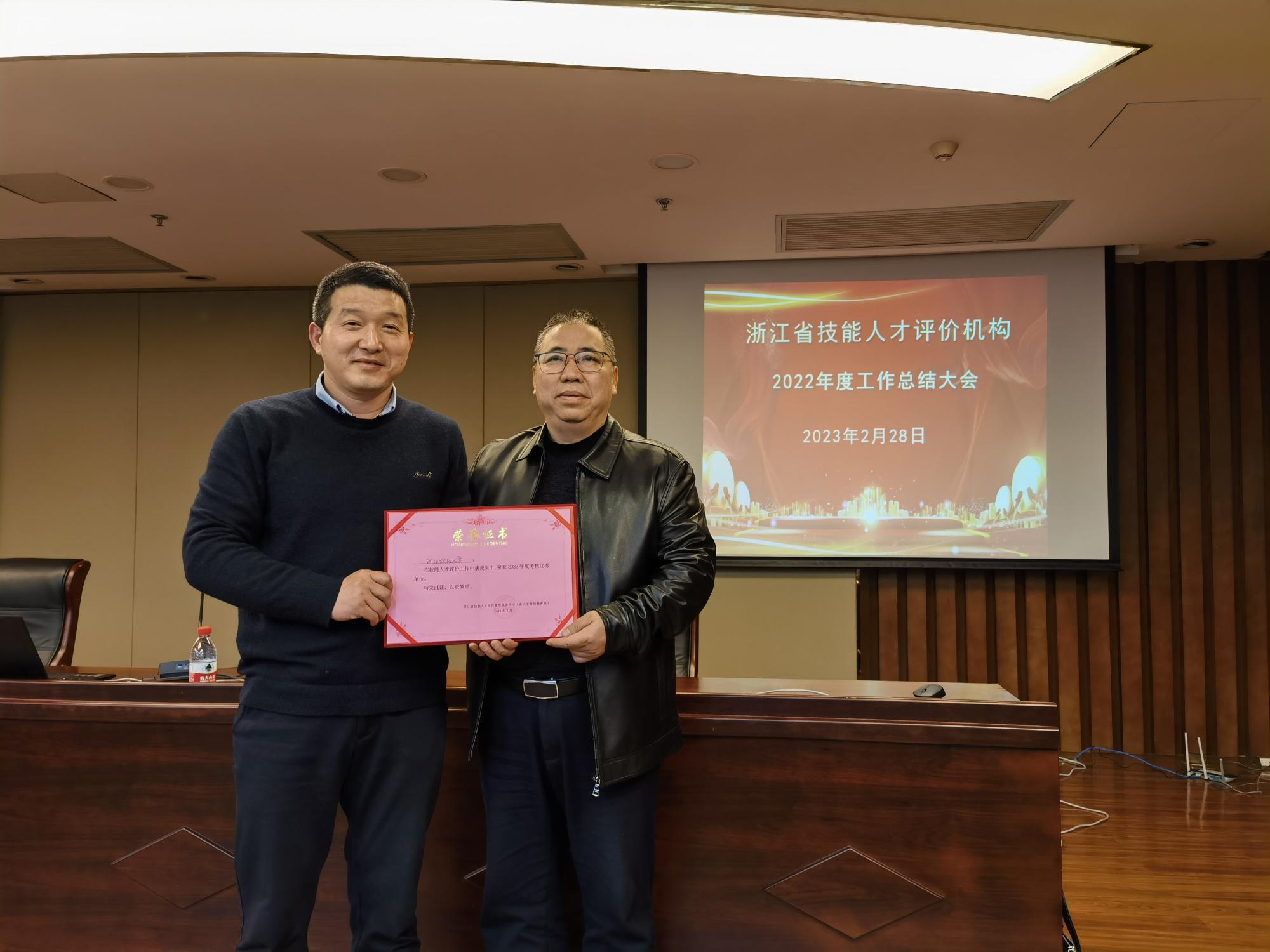 将珍惜荣誉、再接再厉,充分发挥技能人才评价工作的带头表率作用,不断提升技能人才评价质量和服务能力,为持续打造“浙派工匠”金名片,高质量发展建设共同富裕示范区提供技能人才支撑。
