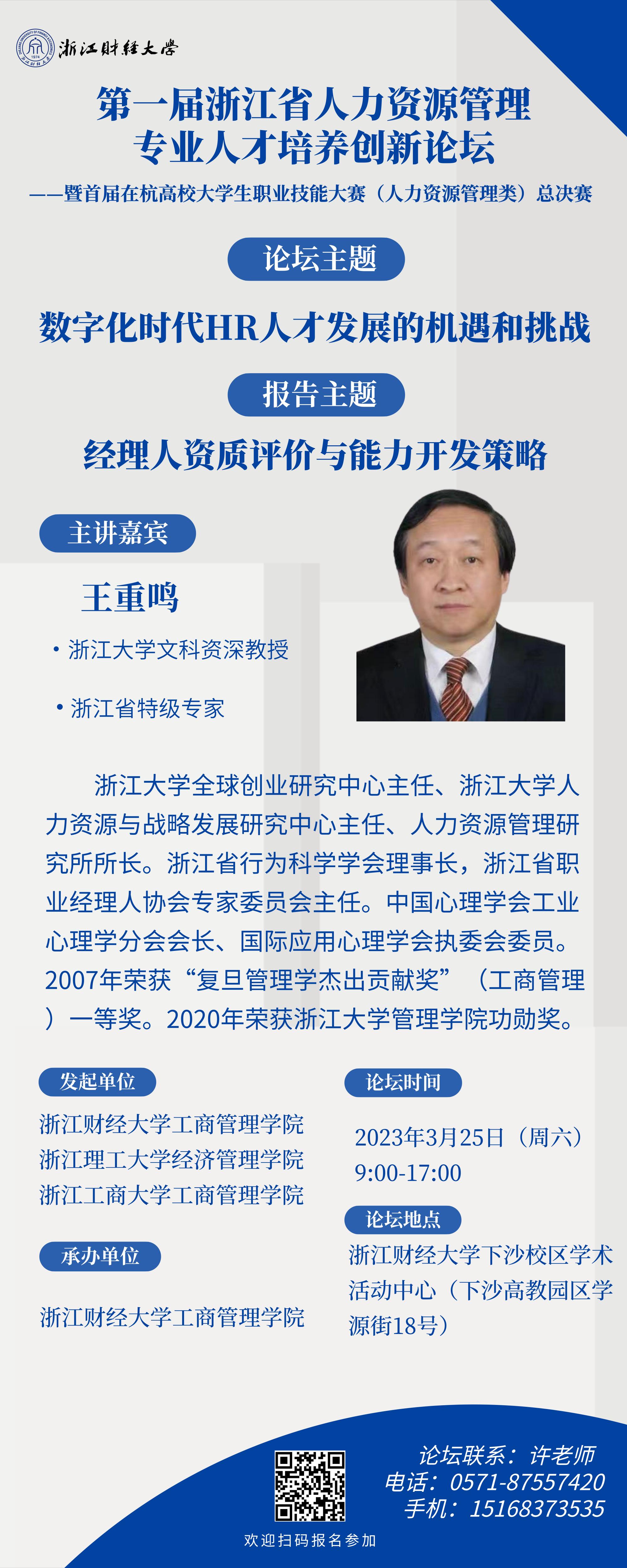 第一届浙江省人力资源管理专业人才培养创新论坛 ——暨首届在杭高校大学生职业技能大赛(人力资源管理类)总决赛 嘉宾介绍