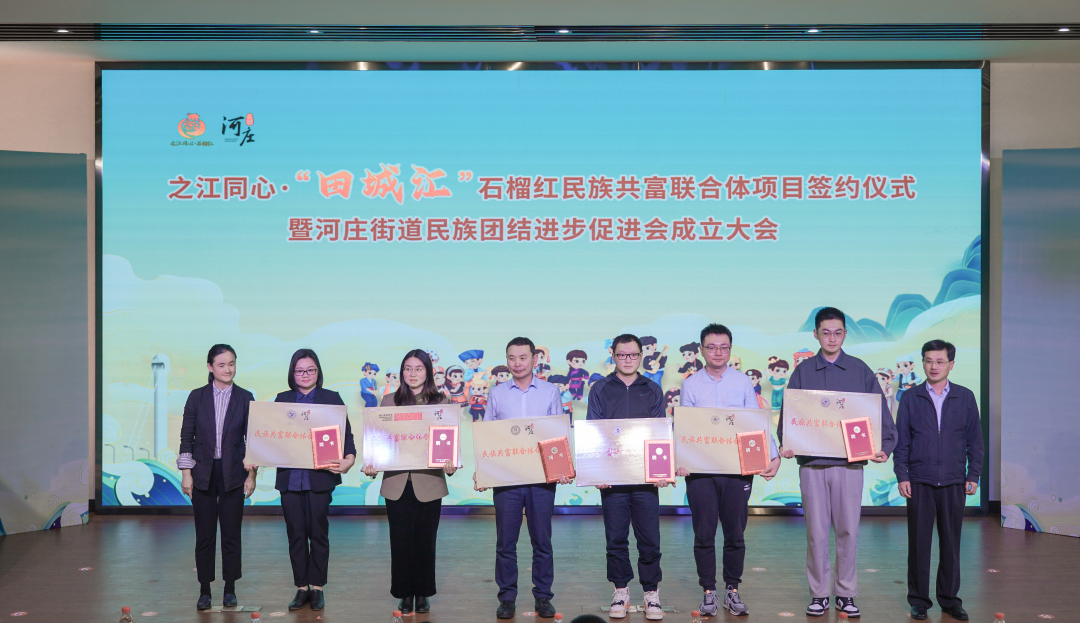 4月27日,之江同心·“田城汇”石榴红民族共富联合体项目签约仪式暨河庄街道民族团结进步促进会成立大会举行。杭州市民宗局党组成员、副局长陶胜,区委常委、统战部部长周伟东出席大会。学院党委书记黄卫华、副院长张雷受邀参加。