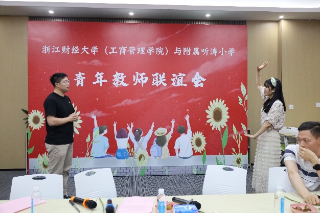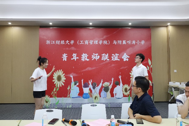 与附属听涛小学青年教师联谊会。本次联谊会近有30名青年教师参与,联谊会持续了两个半小时,由学院工会郭军灵主席主持,学院党委黄卫华书记、听涛小学王卫华校长分别发表了重要讲话。