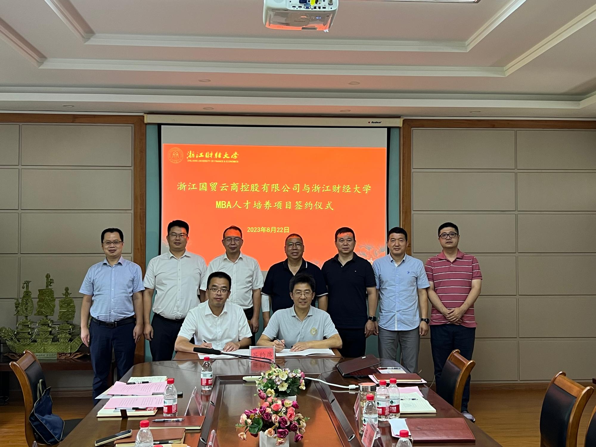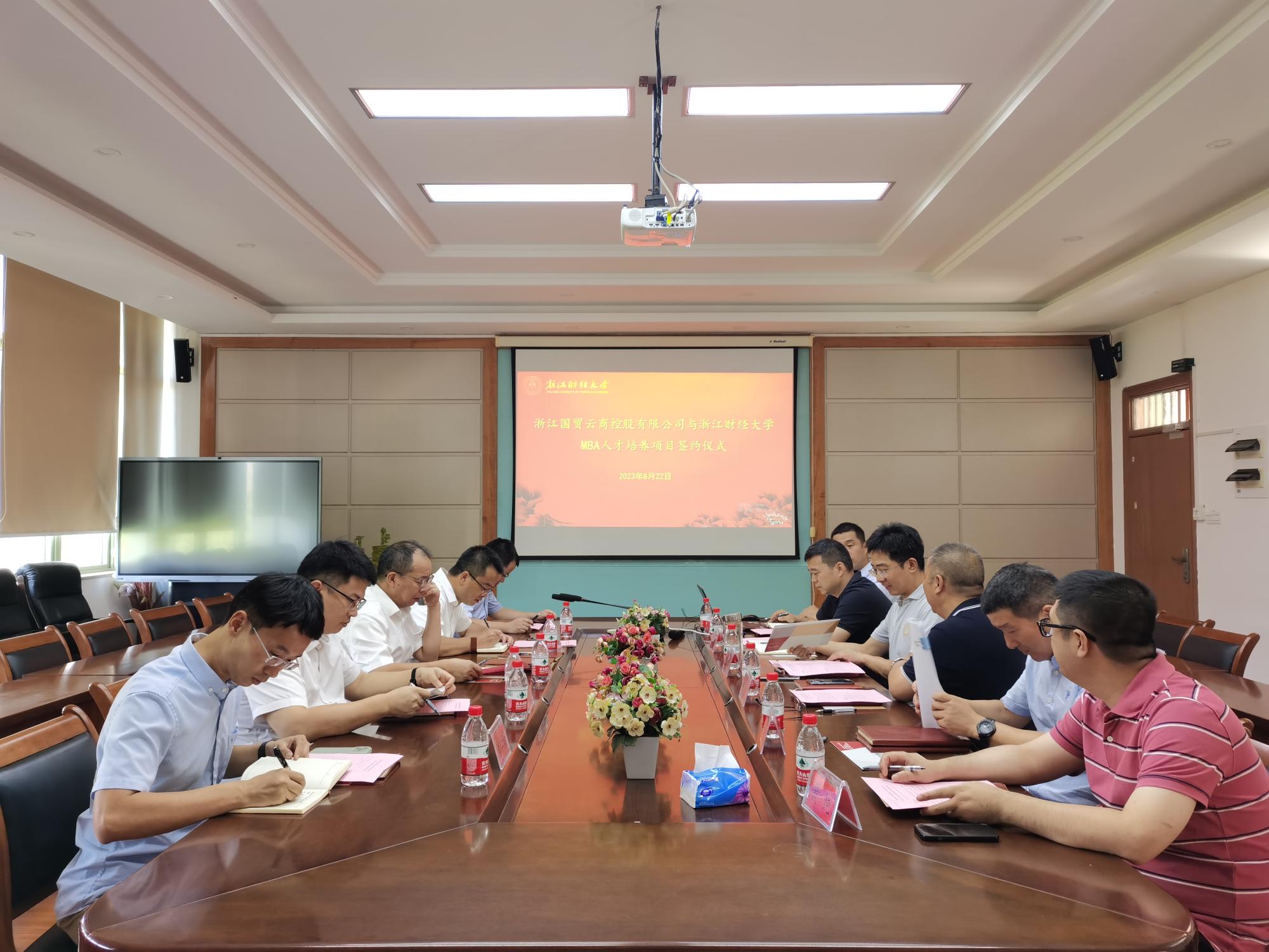 MBA人才培养项目合作签约仪式在5号学院楼410会议室举行。浙江国贸云商控股有限公司党委书记、董事长濮志江,党委副书记、纪委书记鲁霜慧,省国贸集团党委组织部(人力资源部)副部长戴纯平, 国贸云商人力资源部经理丁成山,工商香蕉视频