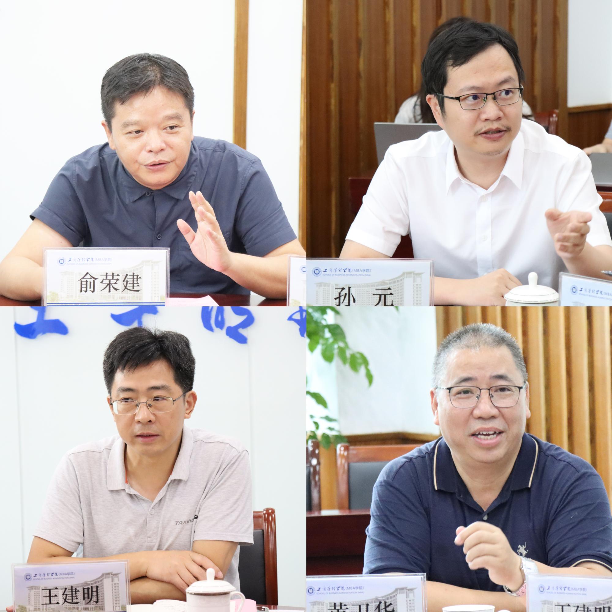 (MBA学院)院长俞荣建、党委书记孙元、副书记袁宏亮、副院长朱玥、岑杰等的热情接待。学院党政领导班子和办公室负责人参加调研。