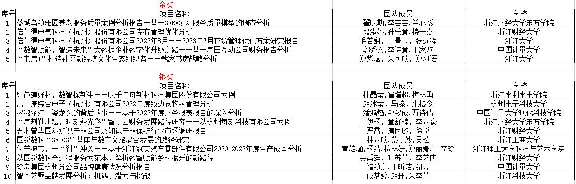 决赛金奖、银奖名单
