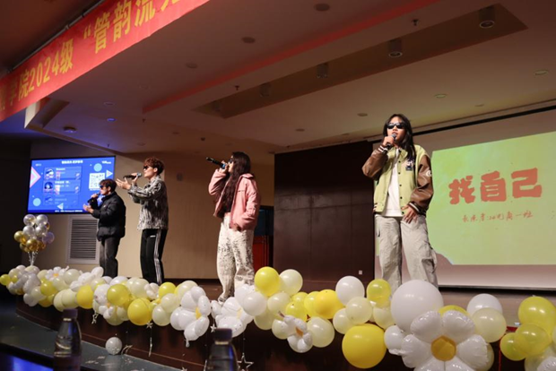 24电商1班的同学们为我们演唱歌曲《找自己》,他们的演唱就像一盏灯塔,照亮每一个观众内心深处那条回归自我的道路。