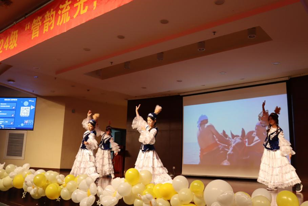 24民族预科班的同学们带来民族舞《鲜花》,她们身穿民族服饰,如同绽放的花朵,随着音乐翩翩起舞,让人好似身置花海,感受少数民族的风情与多彩魅力。
