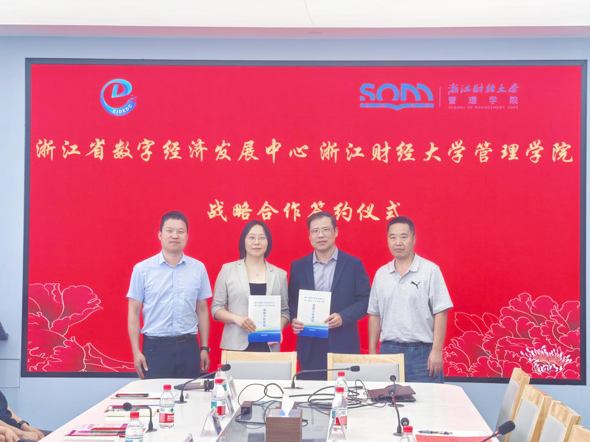 董直庆代表学院对徐招玺一行的到来表示欢迎,并介绍了学院基本情况。希望以此次签约为契机,建立常态化合作机制,不断提升双方在数字经济领域的学术影响力与社会服务能力,助力浙江数字经济高质量发展。