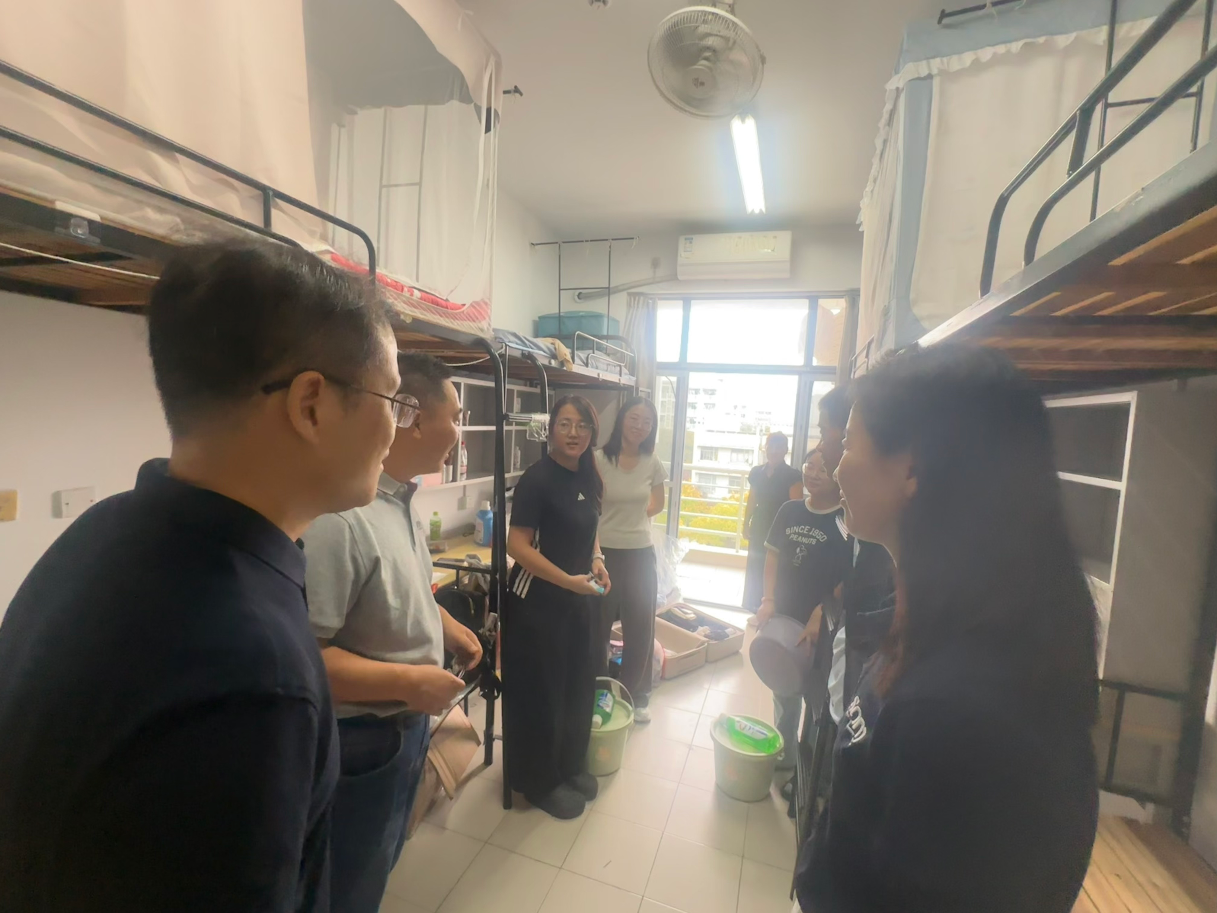 一同走访新生寝室,