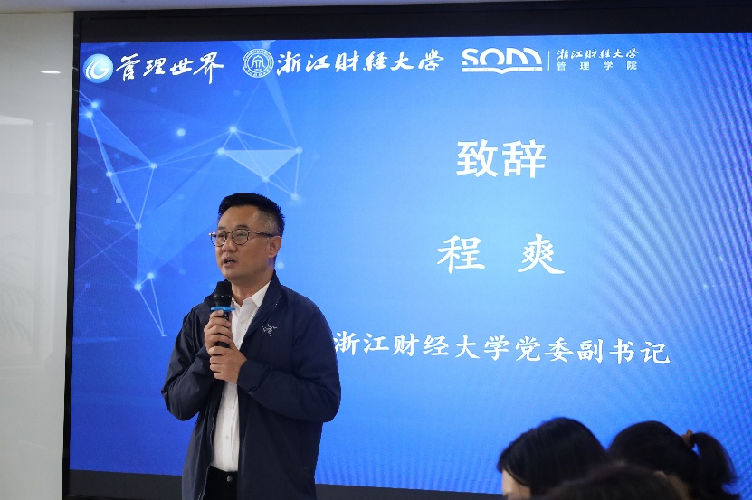 学校党委副书记、统战部部长程爽出席并致辞。程爽副书记对与会专家、学者的到来表示欢迎。他指出,学校自建校以来,始终与浙江改革开放同频共振,紧扣时代需求办学,落地“新财经”战略,服务新质生产力发展。他强调,人工智能等新兴技术已成为新型劳动工具,为文科发展带来新机遇。未来研究应聚焦现实问题,把论文写在祖国大地上,更好发挥财经学科“经世济民”的作用,为浙江共同富裕示范区建设与国家高质量发展贡献智慧。