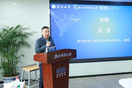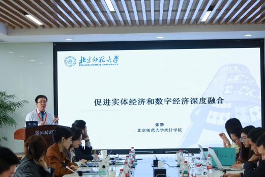 副院长张雷教授主持。浙江大学原党委常委、副校长、国家战略与区域发展研究院院长、教育部长江学者特聘教授黄先海教授带来《创新范式变革与第三大宏观政策建构》专题报告,围绕创新范式变革与第三大宏观制度建构展开深度分享。黄教授提出构建以创新增长为导向的第三大宏观政策,建议以中国原创理论阐释本土创新实践,有助于推动生产函数跃迁和加快新旧动能转换。北京师范大学统计学院二级教授、教育部长江学者特聘教授、北京师范大学科研院副院长兼社会科学处处长张勋教授作题为《促进实体经济和数字经济深度融合》的专题报告,张教授结合自身研究成果,阐释从“数实融合”到“实数融合”的核心内涵,强调数字经济必须服务实体经济、避免脱实向虚,从流通、生产、消费、分配四大维度分享前沿发现,为数字经济研究与实践提供了重要参考。