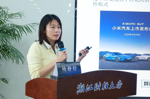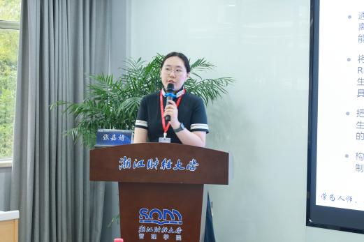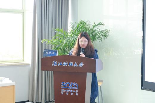 杨静舒老师以《算法推荐、消费者参与和新产品响应:社会流行度的调节效应》为题汇报,研究厘清算法与社会信息联动作用机制,揭示了社会流行度的重要调节作用。北京师范大学张嘉婧同学以《实数融合深化、产业网络协同与新质生产力发展》为题汇报,探析实数融合与新质生产力双向赋能关系,厘清二者演变格局、传导路径与产业网络演化规律。