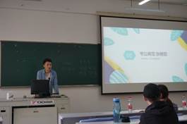 会议伊始,辅导员周衍彤就目前大学生的就业情况展开分析,并分别从考研、考公、出国、就业详尽地讲述了相关准备事项和就业政策。随后,考公典范张艳茹向在场学生讲述了报考公务员的注意事项和笔试面试技巧,并向在场学弟学妹们强调了保持良好心态的重要性。接着,出国典范郑萱向在场学生介绍了国家选择、语言学习、绩点要求、院校选择等经验,内容丰富,流程详尽。最后,考研典范方丹绘制考研院校选择流程图,展示各科复习计划表,罗列各科复习书单。通过学长学姐们的经验介绍,19届毕业生们进一步明确了自己的方向,纷纷表示受益匪浅。