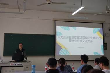人力资源管理专业成功召开19届毕业生就业动员暨就业经验交流大会,大会专门邀请了人力资源管理专业18届毕业生考研典范方丹、考公典范张艳茹、出国典范郑萱为学弟学妹介绍相关经验。人力资源管理专业19届全体毕业生参加了本次会议,会议由辅导员周衍彤主持。
