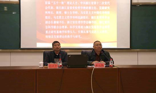 为深入贯彻学习中国共产党第十九次全国代表大会精神,工商香蕉视频 党委结合学院实际,精心设计了系列党课,并于112日下午邀请到浙江省委党校哲学教研部主任郭祥才教授,以“高举伟大旗帜,实现伟大梦想——学习贯彻十九大精神”为主题讲授党课。学院全体师生党员和群众代表参加了本次学习。党课由学院党委书记黄卫华主持。