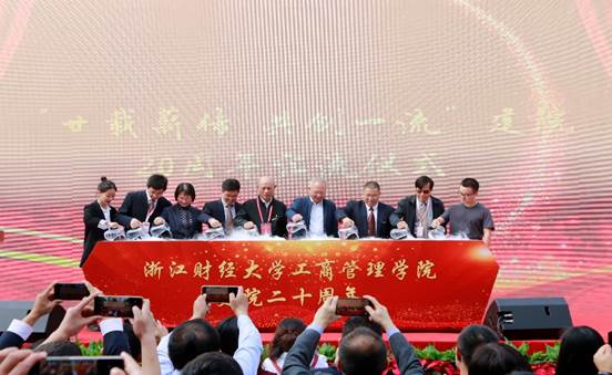 隆重举行建院二十周年庆典暨校友创新创业论坛活动,来自五湖四海的工商学子齐聚一堂,喜迎母校45岁华诞,共襄工商20岁盛典。学院首任院长、原学校副校长李雷生、学院第二任院长楼远、学院第三任院长陈惠雄、学院现任院长董进才、院党委书记黄卫华、创业学院院长、原学院党总支书记尤利群、院党委副书记谢敏、副院长王建明、中美合作项目美方托莱多大学负责人安东尼,以及学院的历届校友和在校师生代表们出席本次活动。