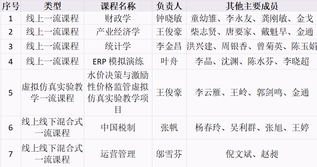 学校首批国家级一流本科课程入选名单一览表