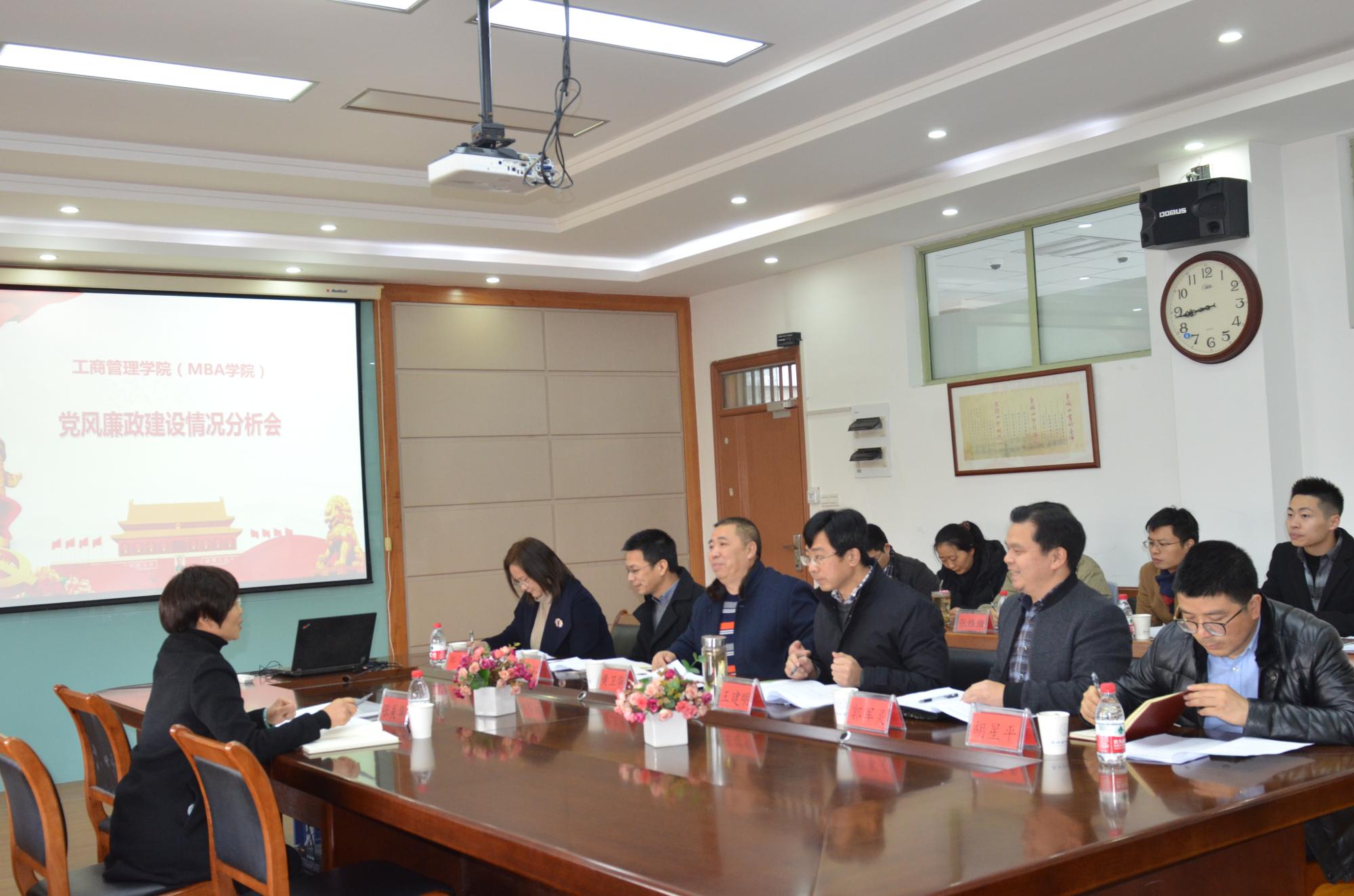 (MBA学院)在410会议室召开2020年度党风廉政建设情况分析会。校纪委委员张美华、院党委书记黄卫华、院长王建明、院党委副书记林骁邦、学院党委委员、学院纪委委员、教工党支部书记参加会议。会议由院党委书记黄卫华主持。