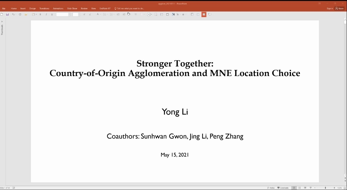 的线上学术讲座在腾讯会议平台开启。李涌教授受邀作了题为Stronger Together: Country-of-Origin Agglomeration, Regulatory Burden and MNE Location Choice的学术讲座。本次学术讲座由工商香蕉视频