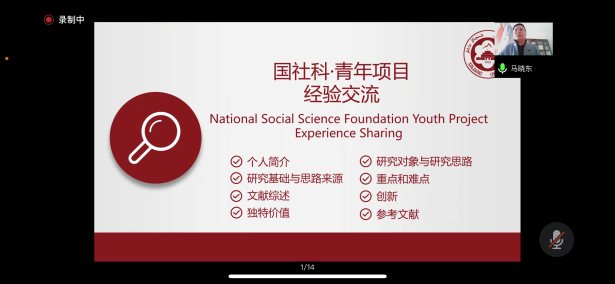 马晓东副教授详细阐述了文献综述、独特价值、研究对象与研究思路、重点和难点、创新、参考文献等方面的经验。
