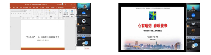 江西财经大学谌飞龙教授介绍了江西财经大学在创业教育课程设计、开办的情况,分享了江西财经大学现行方法和特色经验,展示了江西财经大学目前为推进专创融合所设计的课程体系和建设要点。