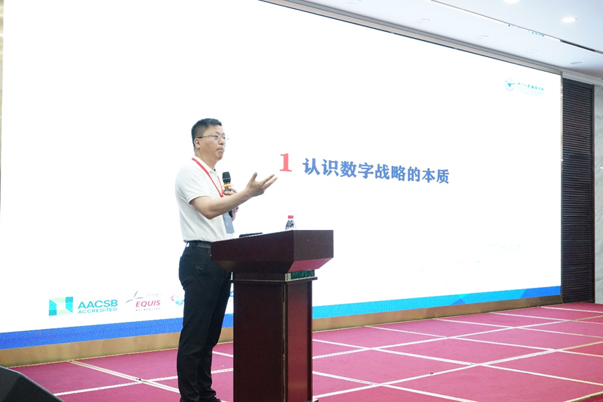 紧接着,王建明教授和戴维奇教授分别主持了四场主题报告。徐飞教授做了“创新创业与企业家精神”的主题演讲,他围绕“创新”“创业”“创新创业教育”这三个核心话题,强调创新创业教育对于个体、民族乃至国家的重大意义,点明创新创业永进不止。魏江教授带来了题为“数字创新与战略”的主题报告,他表示,企业战略的本质并未因数字时代的到来而改变,不过,随着数字技术的广泛应用,生产要素、产业组织形式、生产关系等发生了较大的变化,因而要求战略的形态进行改变。中国信息经济学会副秘书长兼数字经济创新联盟专业委员会主任、中山大学香蕉视频