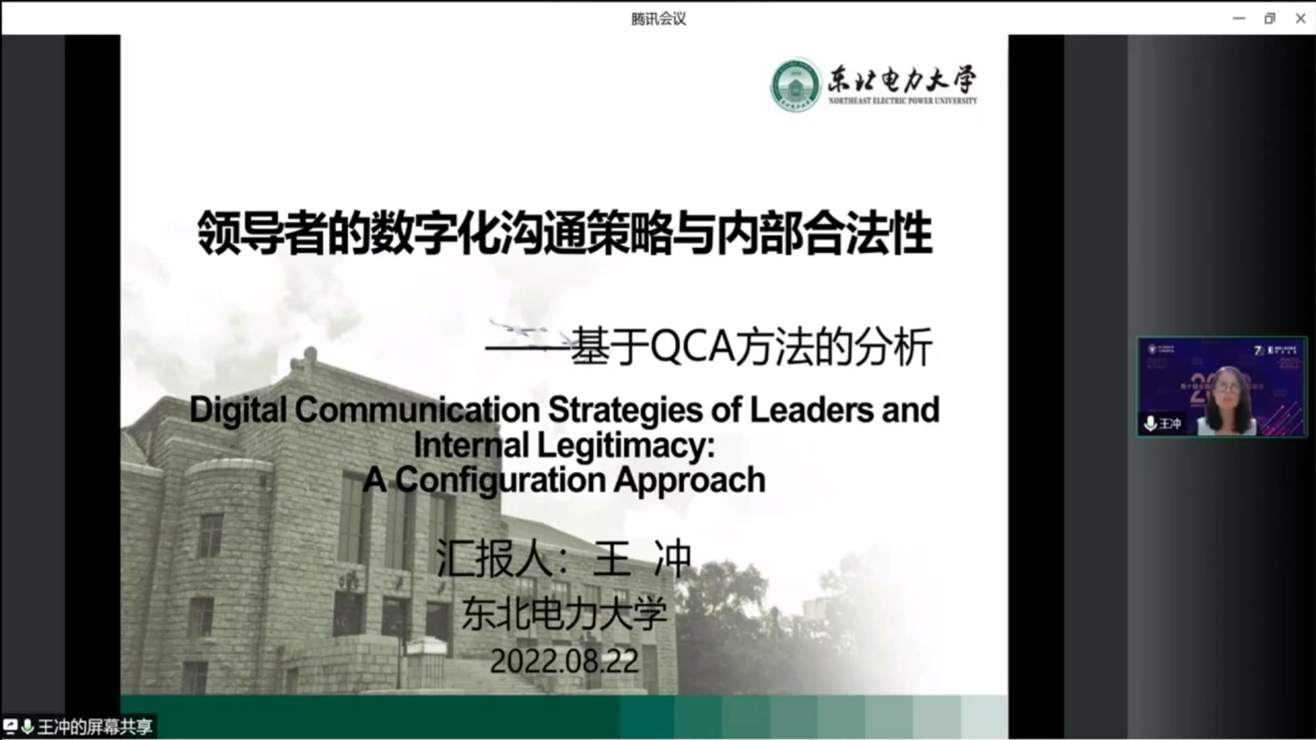 第七位报告嘉宾是东北电力大学王冲副教授,她分享的主题是“领导者的数字化沟通策略与内部合法性——基于QCA方法的分析”。基于现存研究缺口,王冲老师利用fsQCA方法解决“内外部数字化沟通策略如何组合来提高组织内部合法性”这一问题,并以卓越理论的双向沟通和TOST合法性模型为基础构建文章的研究框架,最终得出:双向对称沟通并不是获得更高内部合法性的唯一途径;内部数字化沟通策略完全集中在倾听和与员工互动上,这种高度的可见性以及渴望从员工那里获得关于领导者战略和举措的意见,可能会培养更高的合法性。