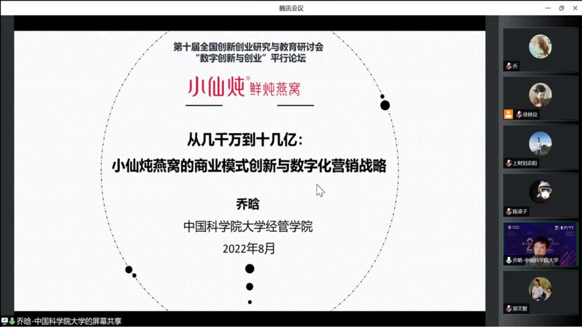 第三位报告嘉宾是中国科学院大学乔晗教授,她分享的主题是“从几千万到十几亿:小仙炖的商业模式创新与数字化营销战略”。她首先介绍小仙炖是如何基于现实行业背景确立新的品类,又是如何一步步打磨自己供应链体系的;其次,当小仙炖被卡在发展瓶颈的时候,它如何运用“聚焦”战略实现了突破,在发展过程中以线上+线下的方式进行了品牌升级,并持续升级优化和提高自身的核心竞争力。最后,乔晗教授将小仙炖的商业模式创新归纳为内部和外部的八大因素,还探讨了小仙炖的C2M模式和价值共创互动过程。
