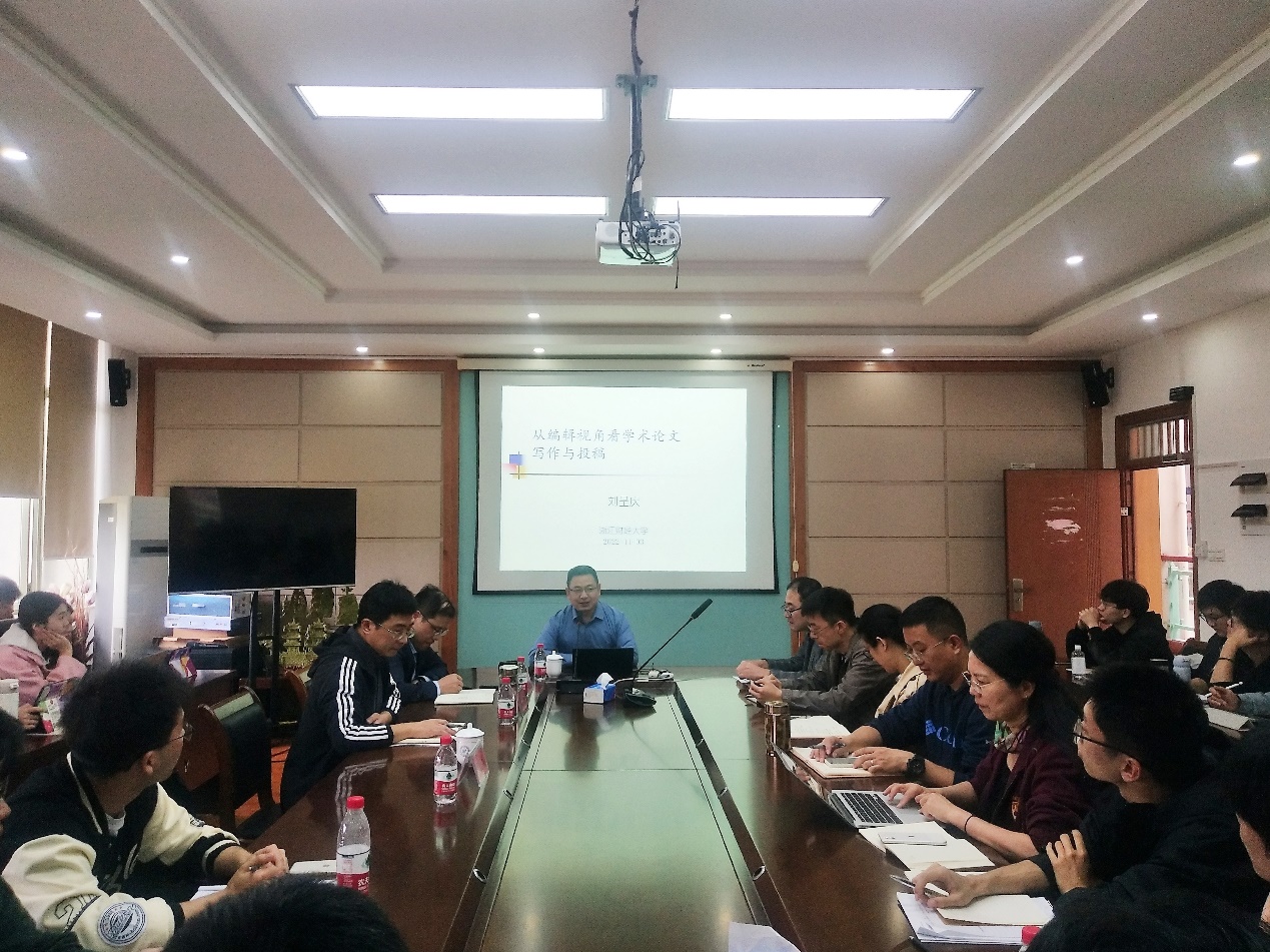 刘教授此次的报告从《中国人口·资源与环境》期刊简介、审稿经验、写作建议、投稿建议以及期刊英文版介绍五个方面展开。刘教授从发展历程、宗旨、特色、国家荣誉、学术影响、稿件处理流程等多个方面展开介绍了《中国人口·资源与环境》期刊。自2000年之后,随着研究不断深入和外审专家的引入,期刊的审稿流程更加规范化,期刊用稿更加倾向研究学术问题前沿、有重大现实需求、论证逻辑严密、方法科学合理、建议具有可操作性、论证充分、工作量饱满的论文。刘教授还结合自身审稿经验详细传授了论文各部分的写作经验,并强调选题要有新意、撰写要遵循逻辑、要善于倾听别人的修改建议、修改要耐心细致、论文篇幅要与主题相适应、要循序渐进提高写作能力、研究领域要相对聚焦。此外,刘教授给在场师生提出了关于投稿的建议,包括论文署名要谨慎、遵循投稿梯度、抓住投稿机会、把握好出版周期、杜绝一稿多投、杜绝学术不端等。