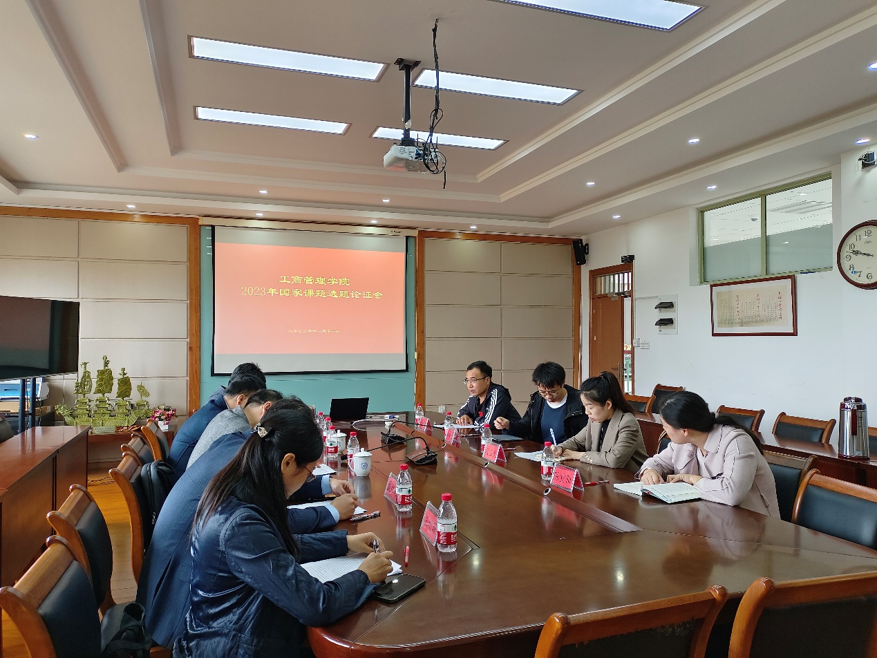 为做好2023年国家课题申报工作,学院于11月11日上午在学院楼410会议室举行2023年国家课题选题论证会。此次会议邀请浙江大学杨俊教授、浙江工业大学程聪教授,对学院教师的选题进行点评指导。院长王建明教授、王珊珊教授参加会议,副院长戴维奇教授主持会议。