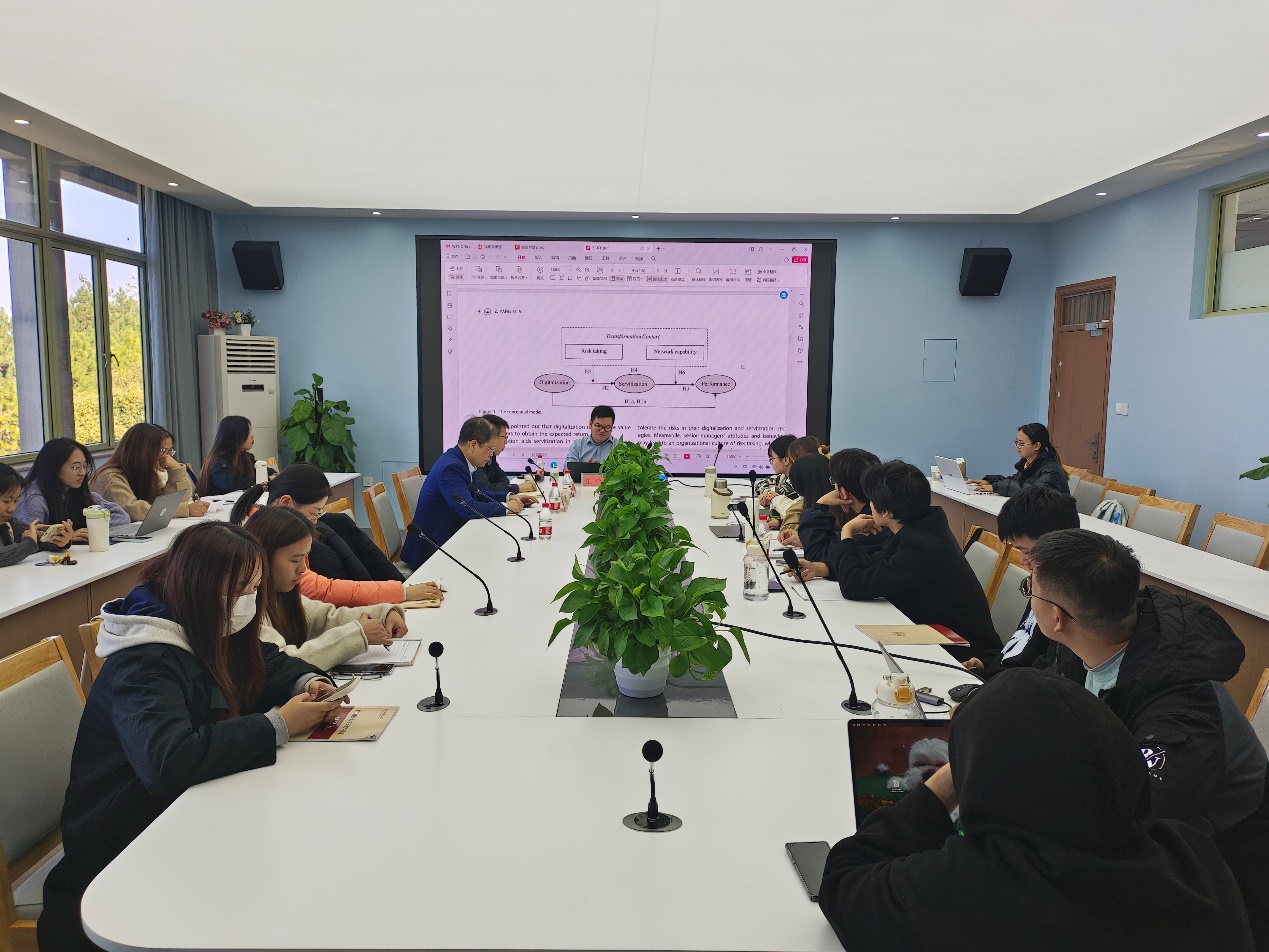 最后在交流讨论环节,围绕此次分享内容,各位同学提出“数字化转型对企业绩效的影响为何存在悖论”“研究所选择的调节变量是基于什么准则进行选取的”“企业网络能力外包会影响企业的财务绩效吗”等问题,张涛教授耐心答疑解惑。此次学术讲座在致谢中圆满结束。