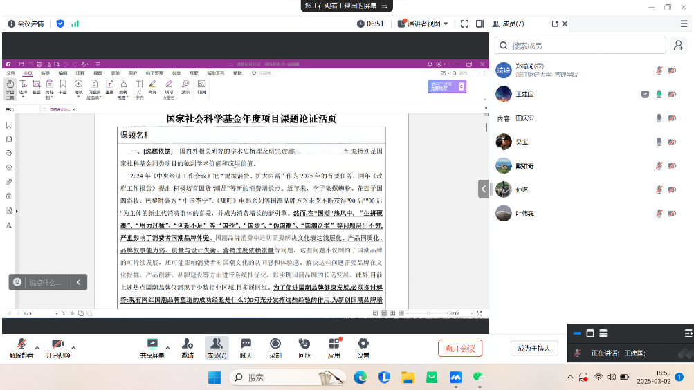 通过腾讯会议平台举办了第四轮国家级课题申报辅导活动。本次活动特别邀请到了浙江工业大学吴宝教授以及学院学术骨干叶伟巍教授为教师的课题申报材料进行深度剖析与精准指导,活动由学院副院长戴维奇教授主持。