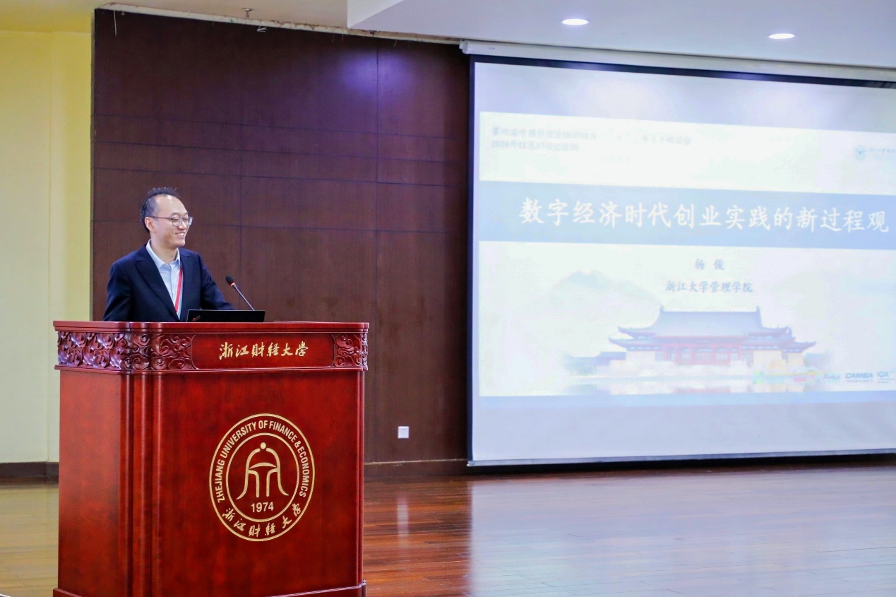 杨俊教授作题为《数字经济时代创业实践的新过程观》的主题报告。杨俊教授阐述了创业实践发生的变化,并对应提出赋予新内涵、价值创造载体变化以及挑战经典创业过程理论三点学术判断。接下来,以谷歌和腾讯公司为例讲述新兴的创业实践的两件事是创造什么价值、怎么创造价值,并提出创业研究的新过程观的“隐性行为—显性行为”组合和整合性理论框架。杨俊教授指出数字经济时代的创业实践是被管理的行为过程,这与我国高质量发展等战略关联密切。