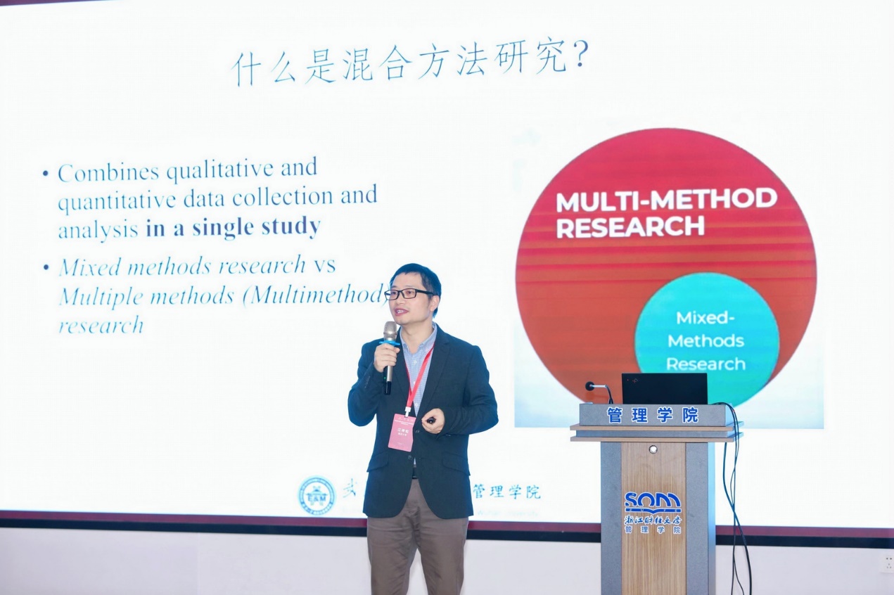 于晓宇教授做出点评,他提到了混合研究方法的优势在于多视角验证、理论构建的深度加深以及实际应用的增强。对于田莉教授的分享,他认为可以从以下几个方面进行改进:首先可以对定性研究进行修改,补充中介机制检验;其次,要更加明确地指出研究中是如何选取案例研究对象,进而避免样本偏倚的风险;最后,他提到要在案例研究中展现构念的涌现过程,以揭示涌现这种现象的动态和复杂过程,以进一步展示运用混合方法的合理性。