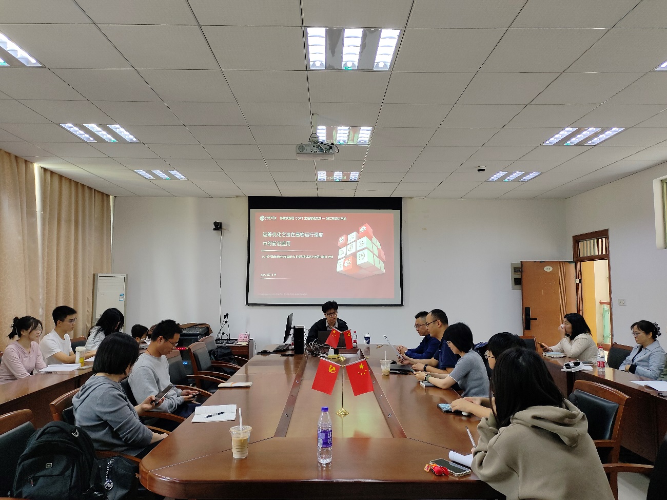 ,并作题为“运筹优化方法在高铁运行调度中的前沿应用”的学术讲座。讲座由张树柱老师主持,学院马祖军、彭娟娟、诸立超、李晓超、王媛媛、王盼盼等众多老师和学生参与。