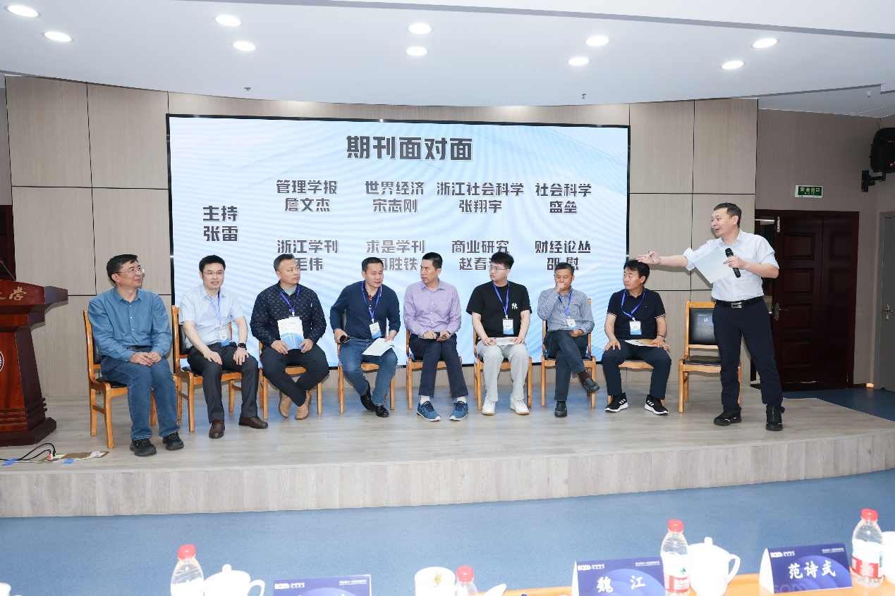 “期刊面对面”环节,《管理学报》《世界经济》《浙江社会科学》《社会科学》《浙江学刊》《求是学刊》《商业研究》《财经论丛》八家期刊代表分别介绍了各自期刊定位和特色,强调论文写作应当注重新问题、新方法,建议师生从身边的问题、研究中发现的问题和国家政策方针出发进行选题。