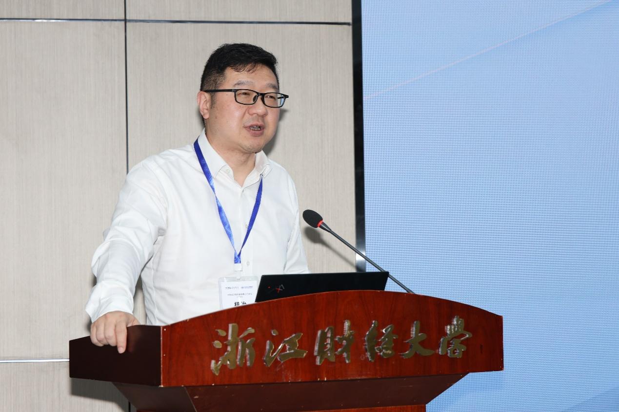 下午的圆桌论坛由华中科技大学詹文杰教授主持,浙江核新同花顺网络信息股份有限公司事业部总经理李振科以“同花顺在金融科技领域的探索和实践”为题,介绍了同花顺AI发展历程,并重点讲解了同花顺数字化基座、产品系统和生态系统。李振科指出,同花顺公司的多次发展跃迁与公司充分利用基础大数据、抓住技术应用前沿有着紧密联系,而技术应用的突破主要依靠高端人才团队的攻坚克难,从而帮助公司抓住时代发展机遇。杭州每刻科技有限公司董事长魏美钟以“业财税数据一体化与数智应用”为题,从会计数字化变革路径、会计新架构的构建、数字会计人才成长蓝图、实时会计的打造等方面阐述了数字会计的现有进展和未来方向。魏美钟强调,会计共享的核心是数据共享,数据共享的基础是数据标准共享和IT平台共享,会计内控将融入业务流程中去,进而嵌入到业务信息系统中,成为信息系统的组成部份。浙江正凯集团总裁朱国洋以“正道凯行,惟精惟新”为题,围绕民企高质量发展提出五个主要观点。朱国洋认为,“中国民营企业高质量发展”与“中国企业高质量发展”应该是一回事,“高质量发展”是每一个产品、每一个产业的基本发展逻辑,多数中国企业应当在自己的主场上惟精惟新、追求极致,企业的数智变革应当是发展之翼而不是生存之本,在科技革命的浪潮下企业管理既有可能走向启蒙运动式的突变,也有可能回归简单。新浪微博营销/区域发展事业部副总经理杨昆以“社交引爆X数智赋能”为题,提出“高热度”“够权威”“强裂变”三边生态优势构成微博专业影响力氛围和差异化价值,而微博的差异化价值通过“造声势”“强心智”“沉资产”帮助民营企业塑造新兴领域的领先形象、优化运营效率、形成可持续竞争壁垒,从而助力民营经济高质量发展。