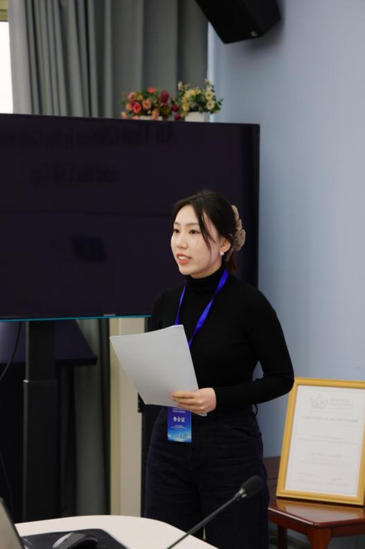 华南理工大学王晶晶以《管理者认知驱动下企业AI战略能力的构建—基于“时空焦点”的实验研究》为题作了汇报。研究聚焦“管理者认知过程如何驱动AI战略能力构建”,以情境化AI理论、注意力基础观为支撑。指出管理者认知是企业决策与竞争优势的关键,且空间焦点通过机会识别中介影响AI战略能力,时间焦点发挥调节效应,为企业AI战略实践提供了新视角。
