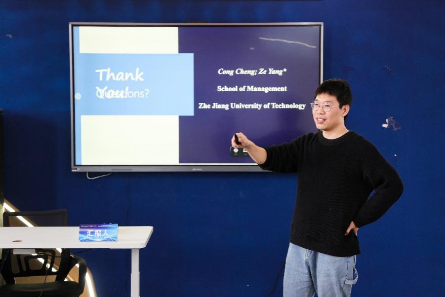 李雯以《The Impact of Artificial Intelligence on Entrepreneurial Orientation:A Technology Affordance Perspective》为题作了汇报。研究聚焦“人工智能与创业导向的关系及内在逻辑”,调用技术可供性理论,以此解构人工智能影响创业导向的内在机理,为相关领域研究提供了全新的技术视角支撑。