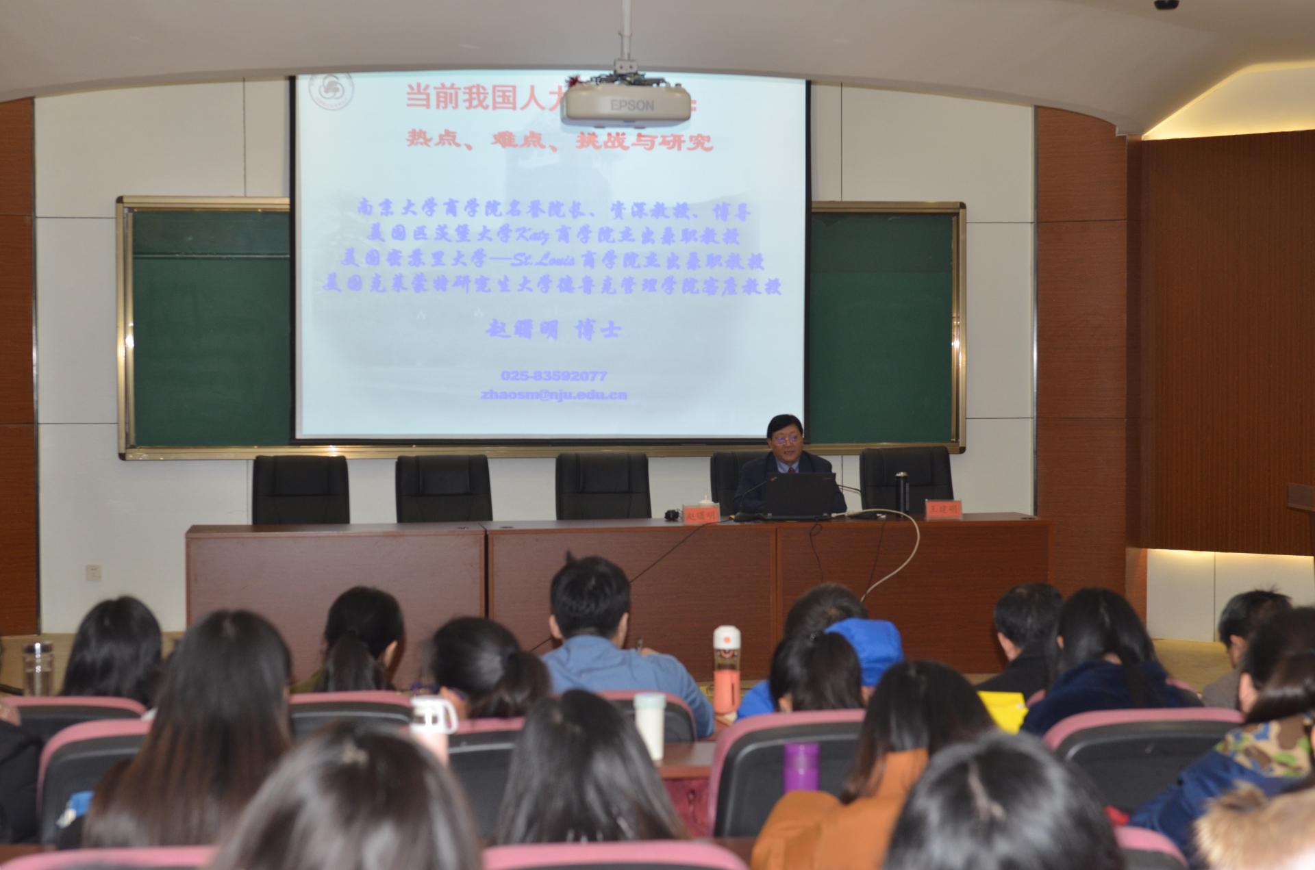 师生做了一场题为“当前人力资源管理热点、难点、挑战与研究”的讲座。能够容纳150人的报告厅座无虚席,还添加了不少椅子,主持人王建明教授不禁感叹:“大师出场,自带光环”。