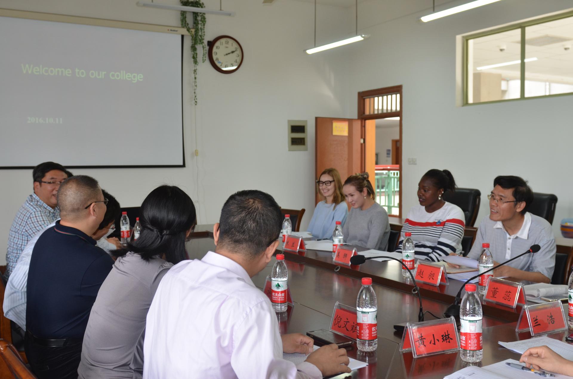 10月11日下午,学院院长董进才老师、党委书记黄卫华老师,党委副书记谢敏老师,副院长王建明、倪文斌老师,国际学院副院长李汉强老师以及两个学院相关老师与香蕉视频