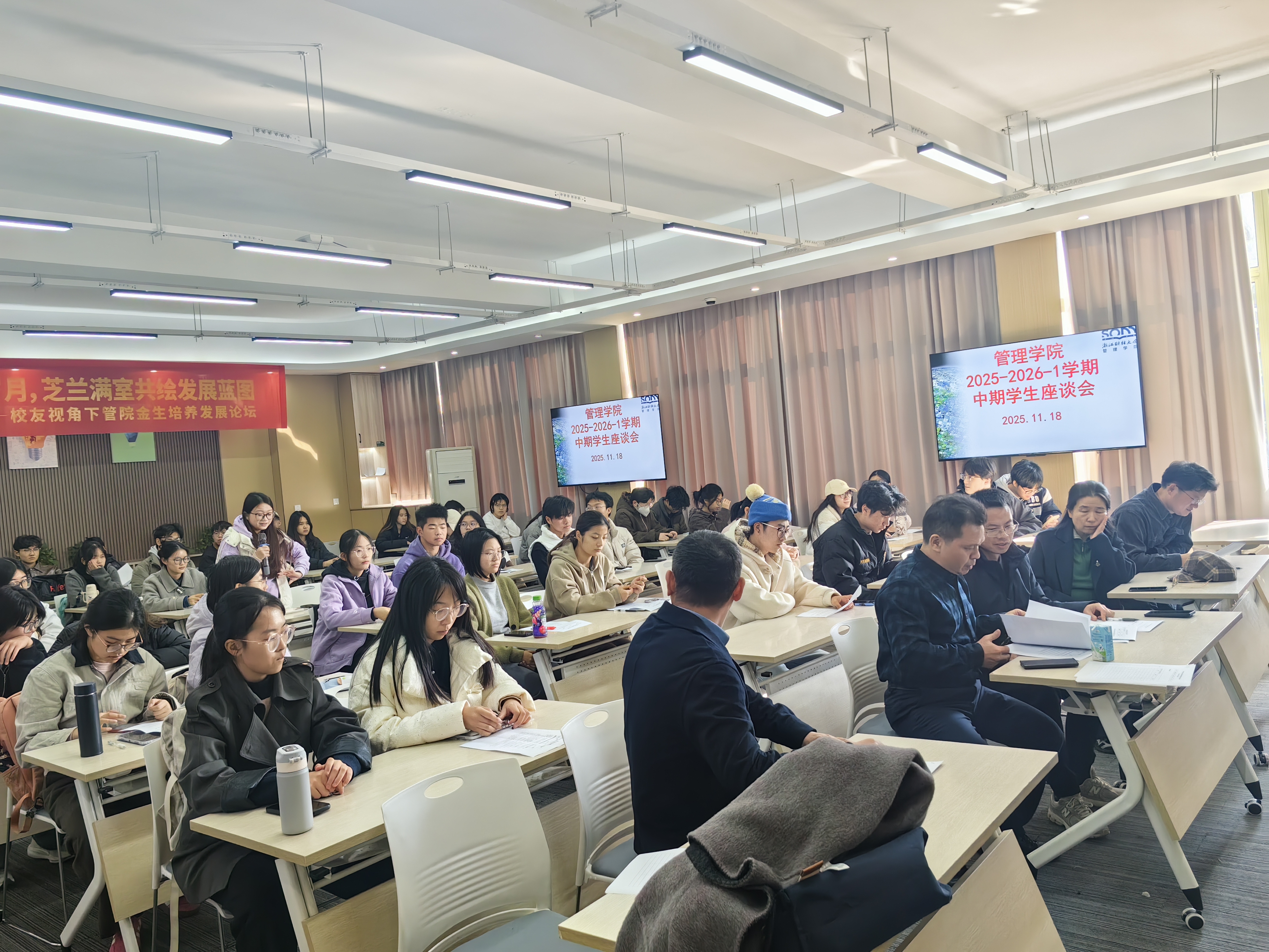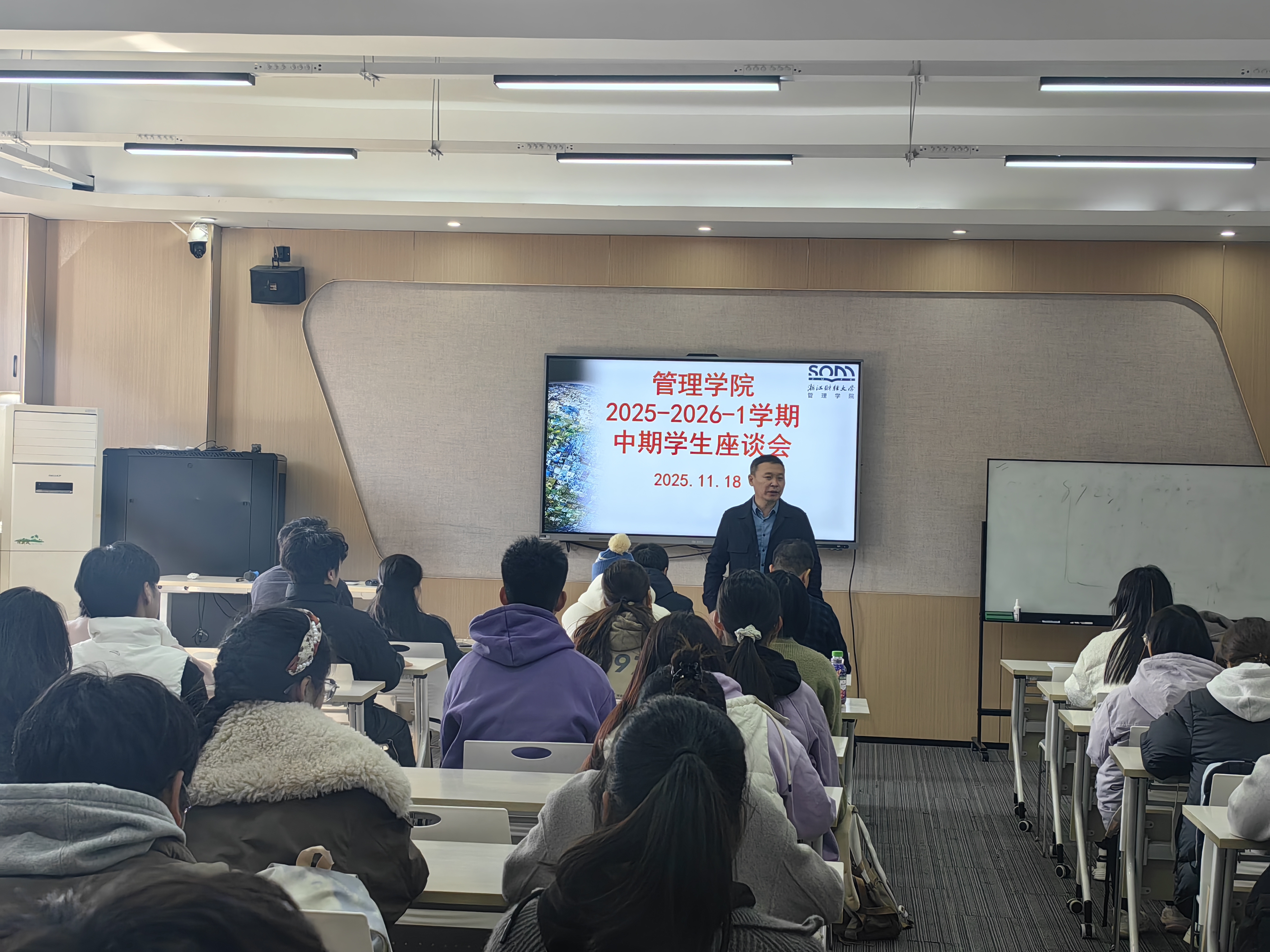 在学院楼411顺利召开了2025-2026学年第一学期本科生中期座谈会。会议由本科生教学督导组组长郭军灵老师主持,教学副院长张雷和吴丽民、汪志强、杨亚、周学广、诸立超、郭琨等老师及23、24、25级各班级学生代表共50余人参加了本次座谈会。