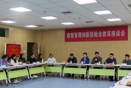 院长王建明、工商学院沈渊教授、文华学院李珍老师、创新班班主任贺锦江老师、辅导员何俊杰老师及全体创新班学生参加座谈会。