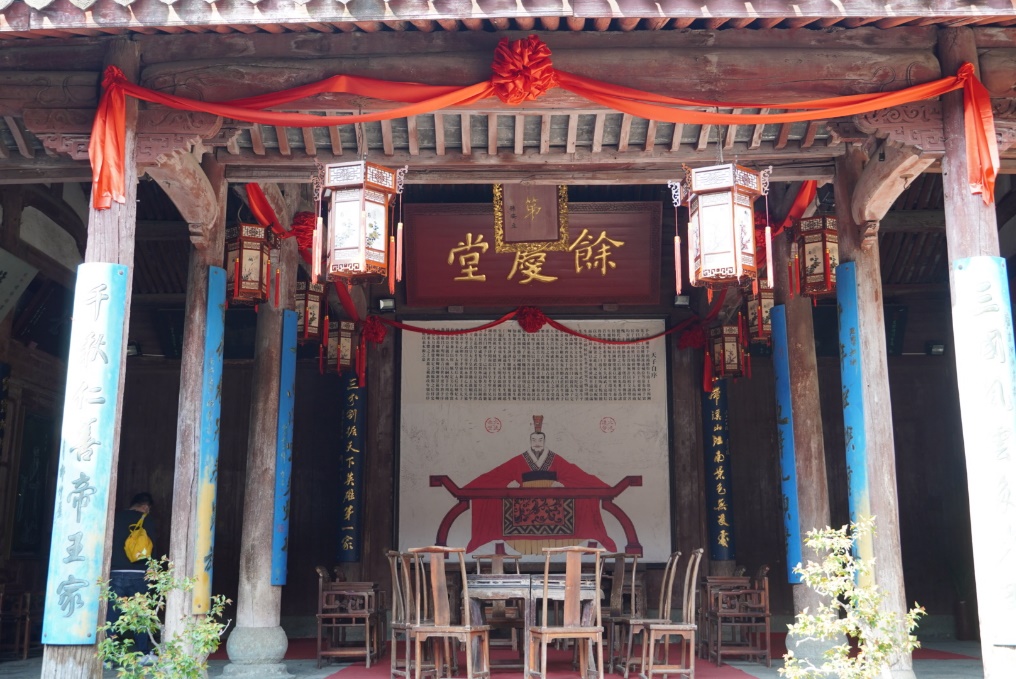 调研团队还来到了龙门古镇自然村。龙门古镇是有着数千人的孙氏聚居地。调研小组看到往日人群熙攘的孙权故里、孙氏祠堂显得较为安静,一重重状元武举的牌匾无声宣告着曾经的辉煌,庄严的大殿右厢还张贴着孩童启蒙典礼的幕布,亘古的钟磬声和幼童懵懂的读书声在这一刻交织,古朴的希望在这里传承,或许这就是祠堂的意义所在吧。调研小组在附着这青藤的木顶灰墙间穿梭,这是游人的走廊,也是当地居民的弄堂。一直在当地经营面馆的老板娘说,虽然这是景点了,但大家一直都是住在这里的,来了游客收入提高不少。她还表示儿子清明回来了,她很高兴,这的年轻人大都出去上学工作了,倒不常回来。丰厚的宗祠文化资源不仅赋予了当地精神文化力量,更带来了实际的经济效益。疫情对景区经济的冲击十分巨大,但龙门古镇村民“前是店,后是家”的布局设计,让每个村民保有双层身份,游客减少也能从容依旧,爽朗的笑声和交谈声在瓦檐上跳跃,让我们看到了宗族乡村服务旅游业未来的曙光。乡村振兴要让村民留得住,要让游人进得来,美丽乡村既是金山银山,更是留得住的乡愁,看得见的家。